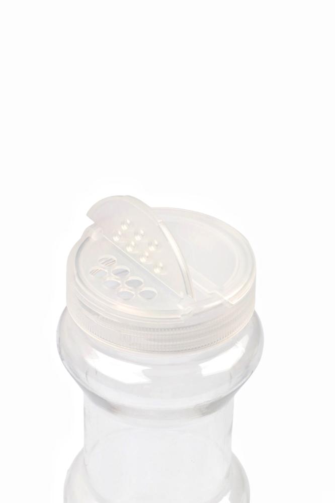 علبة بهار بلاستيكية غطاء أبيض مزدوج الفتحات (ملاحة) 400 ملل